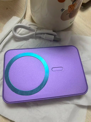 Magnetic wireless power bank keeps phones charged fast on the go, no cables needed.